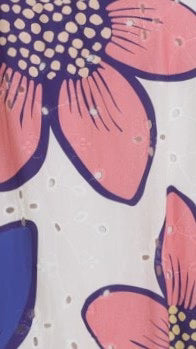 The Norah Eyelet Maxi Dress in Botanic Blue/Pink Print is an elegant statement piece crafted from delicate broderie fabric. A square neckline and adjustable shoulder straps provide flattering support, while the shirred back panel creates subtle shaping for comfort and movement. The maxi silhouette flows gracefully, enhanced by practical side pockets on the skirt. An invisible back zip ensures a seamless finish, and the lined construction guarantees refined wear. Timeless sophistication for any occasion.