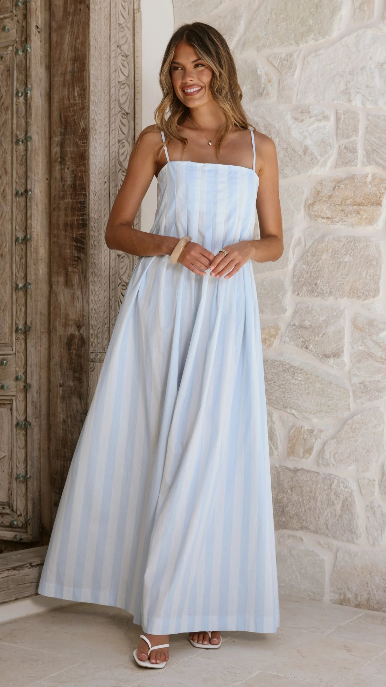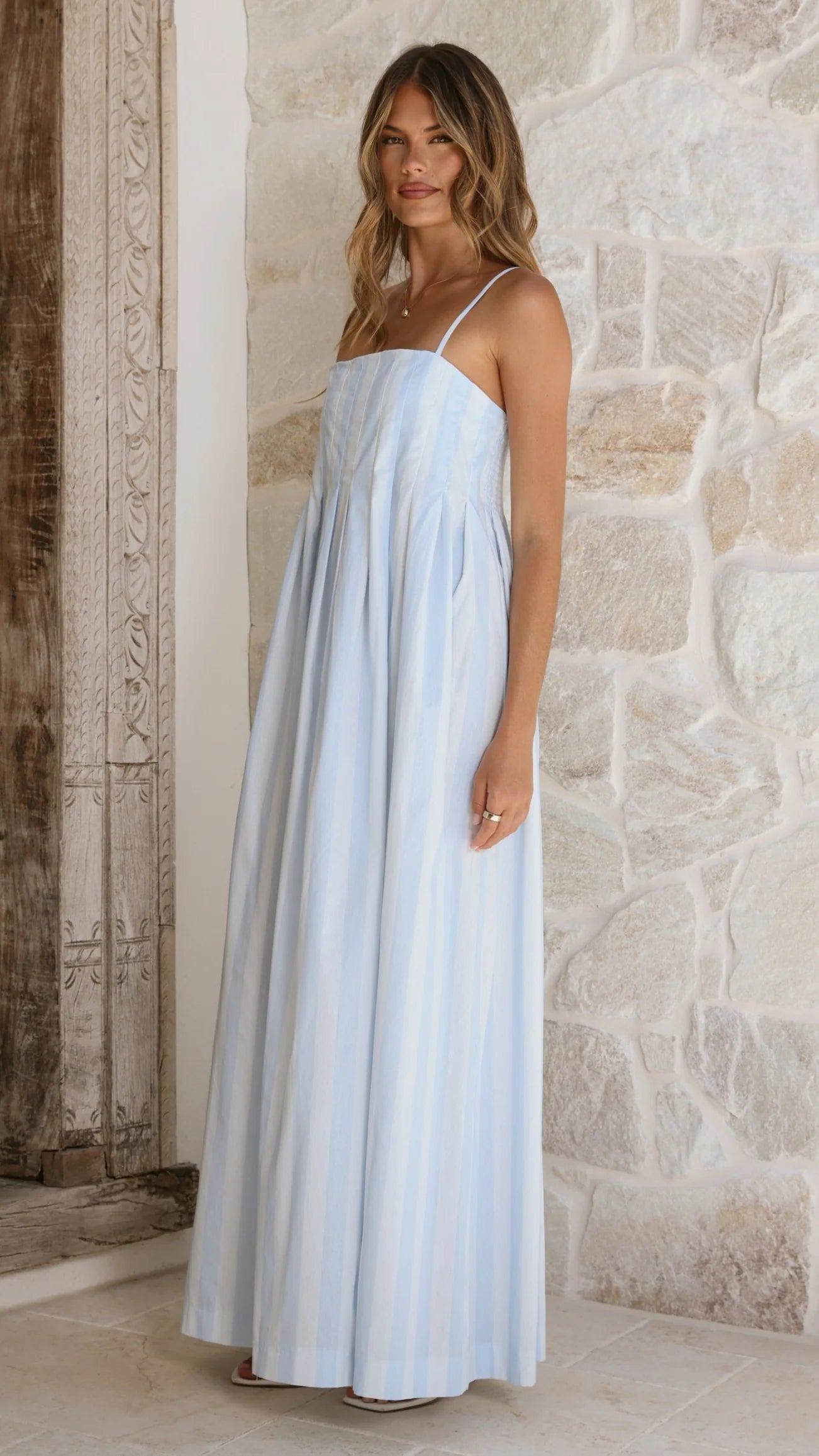 The Pippa Maxi Dress offers effortless elegance with its flowing maxi length and timeless straight neckline. Adjustable spaghetti straps provide a customisable fit, while the pleated bust design adds subtle dimension and flattering structure. Perfect for both casual outings and refined occasions, this versatile piece transitions seamlessly through your wardrobe.